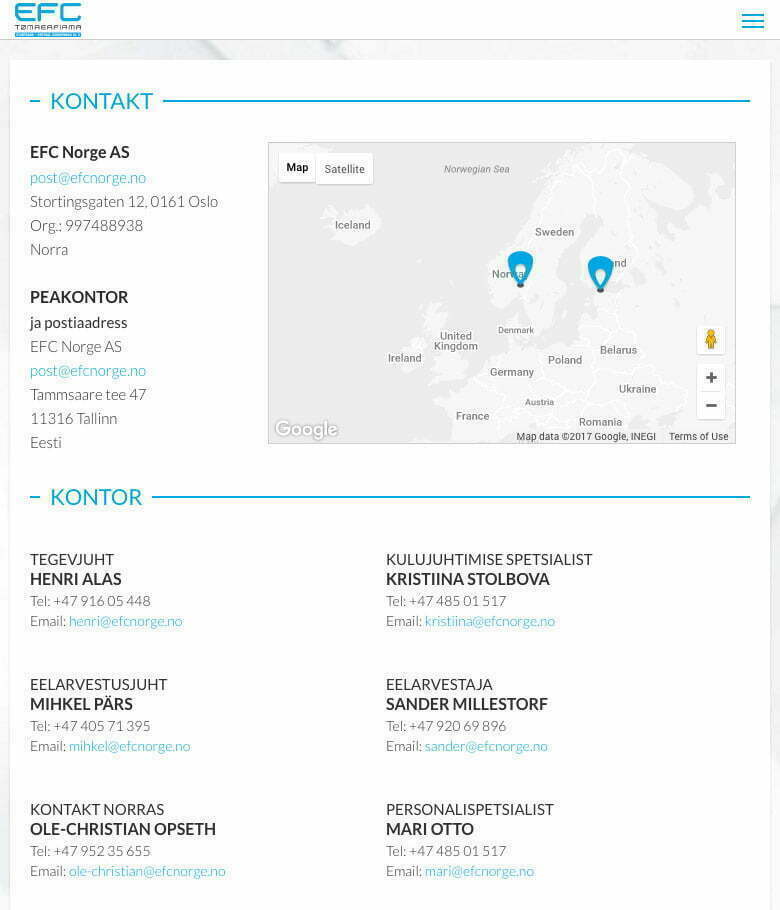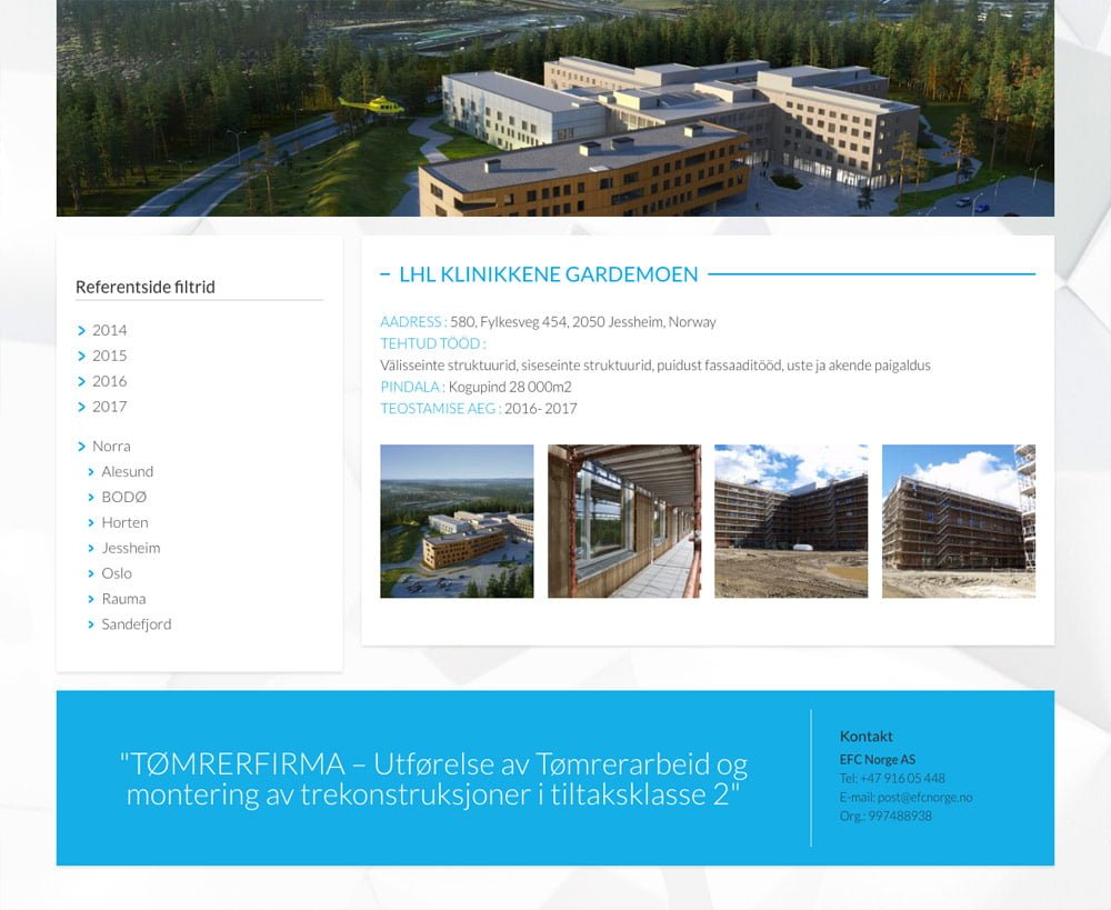 EFC Norge is one of biggest and leading metal and wooden framed inside and outside wall construction buidlers in Norway. They work all over country from Oslo to Tromsø and their clients are biggest Norwegian construction corporations. Reiven Solutions built them this respectable and modest website to introduce themselves and showcase their work.