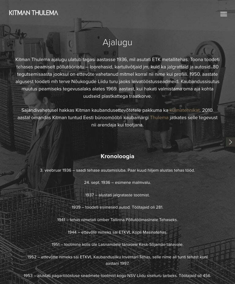 We developed a website for Kitman Thulema who has long-term production experience using contemporary technology in the field of developing, producing and marketing products for social interiors.
