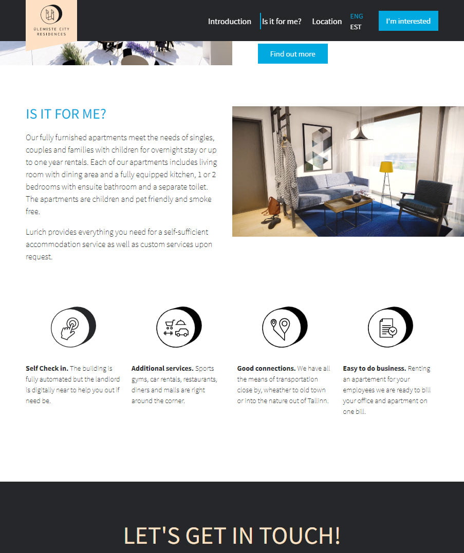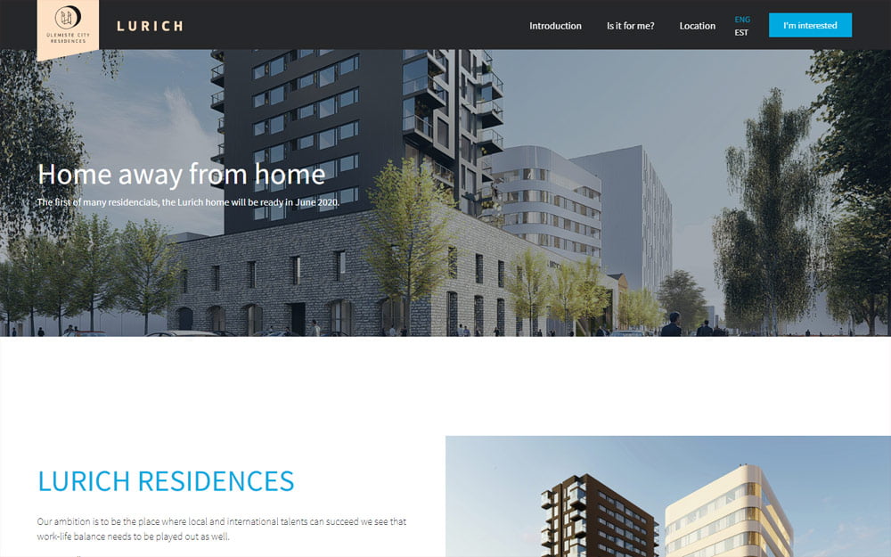 A website for Lurich – a real estate project by Ülemiste City Residences containing Lurich Residences and Lurich Offices.