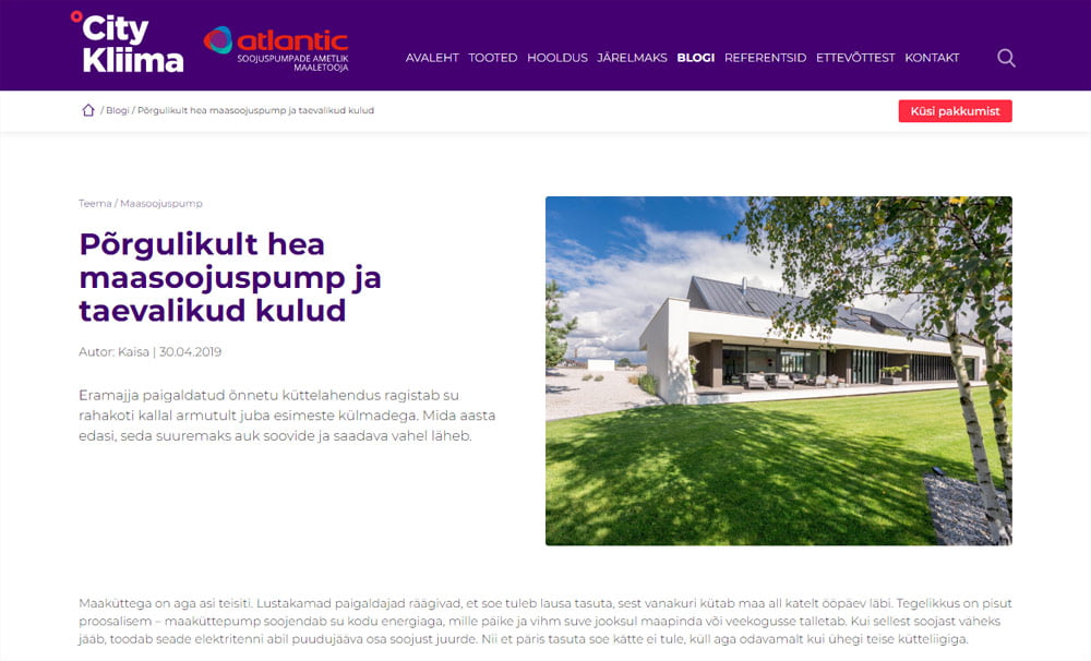 CityKliima on tegutsenud alates 2008. aastast, pakkudes küttesüsteemide, ventilatsiooni- ja kliimaseadmete müüki, paigaldust ja hooldust. Aitasime viia nende veebilehe täiesti uuele tasemele.