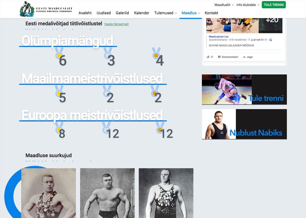 Oleme uhked võimaluse eest, et saime luua uus veebileht Eesti kõige edukamale olümpiaalaliidule – Eesti Maadlusliidule. Sellelt veebilehelt leiate kogu vajaliku teabe maadluse kohta: uudised, võistlused ja muud tulevased sündmused, fotogaleriid, tulemused, maadluse ajalugu, Eesti medalivõitjad, ülevaate suurimatest maadlejatest ning informatsiooni liidu kohta. Lisaks saate tutvuda klubidega, kus treenida või kuhu oma lapsed treeningutele viia.