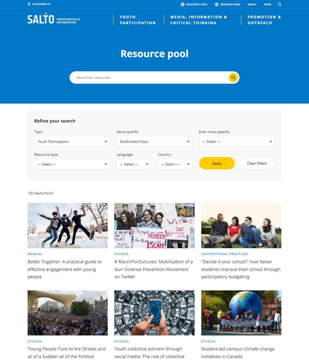 SALTO – Participation & Information resource pool veebisaidi eesmärk on harida ja levitada meedia- ja infokirjaoskuse olulisust. Platvorm pakub rohkelt ressursse ja tööriistu, mis aitavad kasutajatel paremini mõista ja kasutada meediat ning informatsiooni kaasaegses digitaalses maailmas.